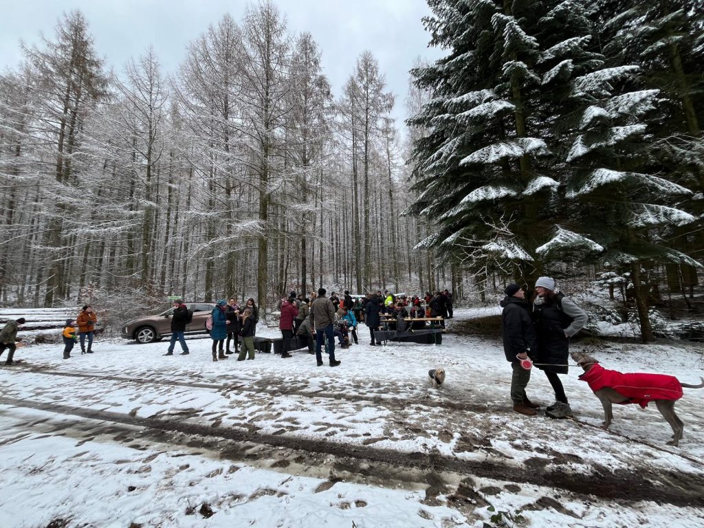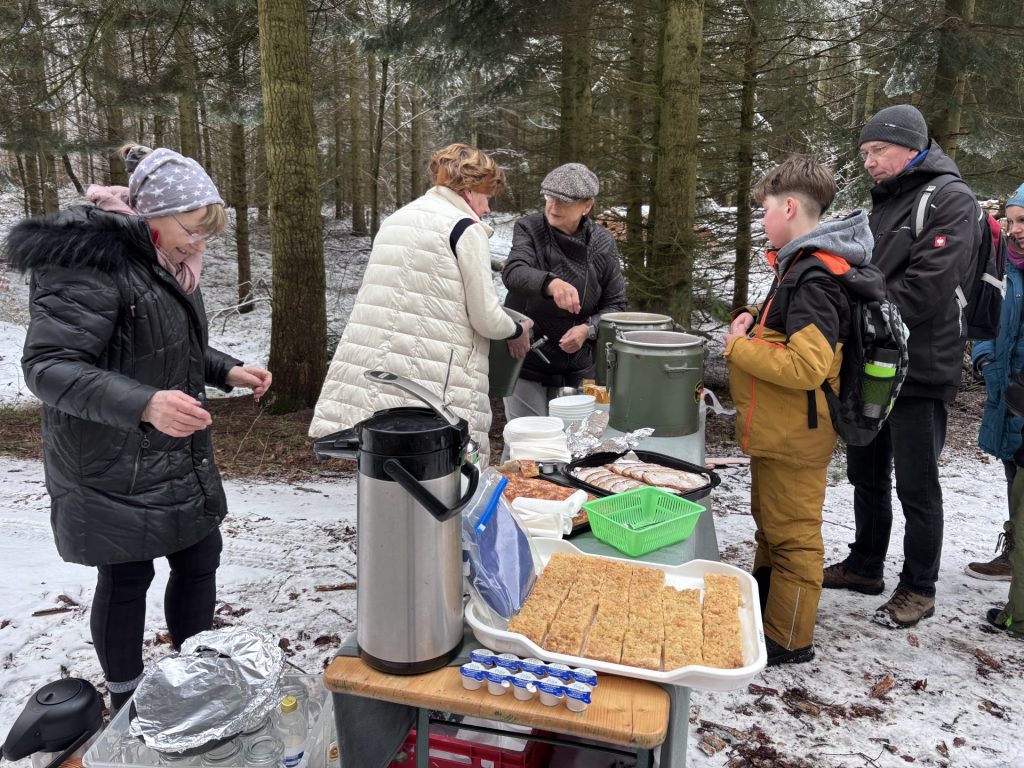 Ein besonderer Höhepunkt war die Pause am Barschpfuhl. Dort wartete mitten im Wald eine herzhafte Stärkung: leckere Kartoffelsuppe, Bockwurst sowie heiße Getränke zum Aufwärmen. Als süßer Abschluss gab es sogar noch Kuchen – besser hätte die Verpflegung kaum sein können.