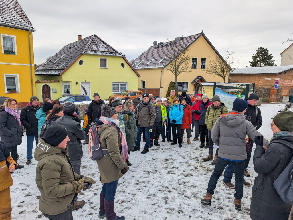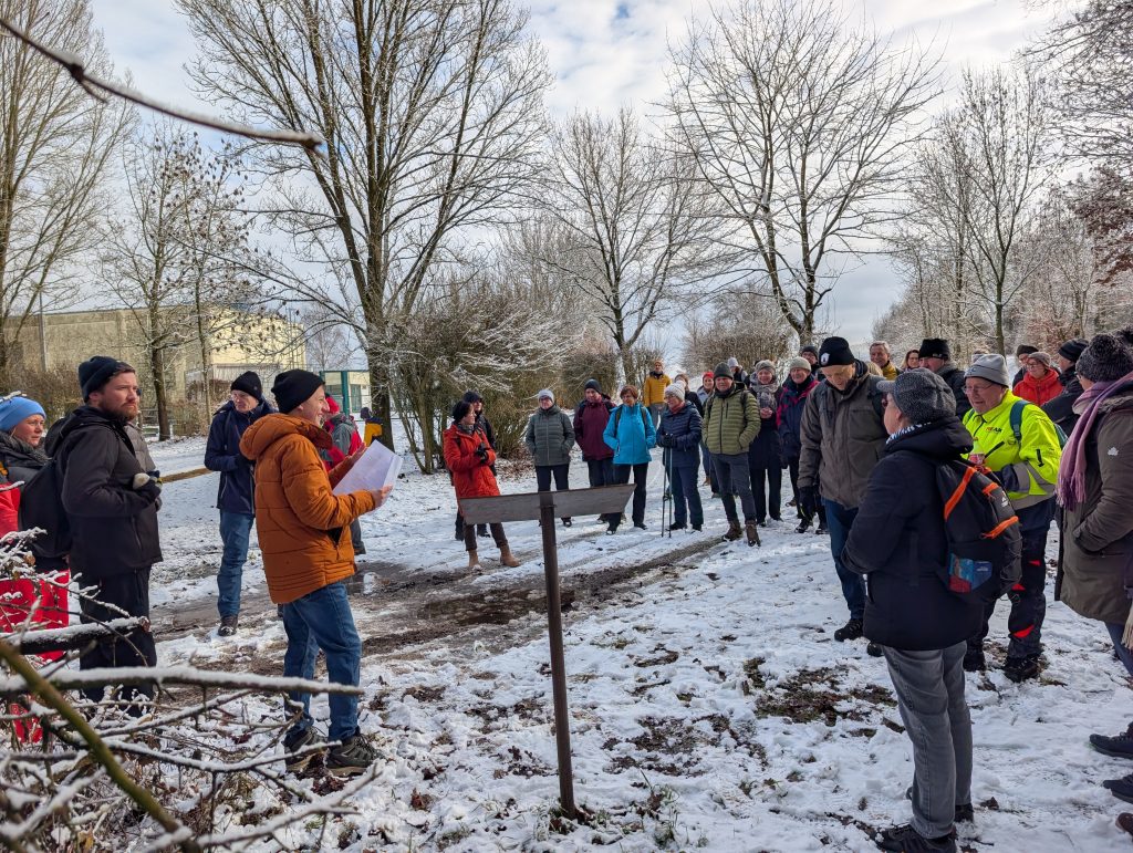 Der Lehrpfad mit seinen 13 Stationen bot viele spannende Einblicke in Natur, Geschichte und Kultur unseren Ortes. Eigentlich war die Wanderung auf 40 Personen begrenzt – doch das Interesse war so groß, dass sich 50 Teilnehmer anmeldeten und auch tatsächlich mitwanderten. Trotz der großen Gruppe herrschte eine angenehme, fröhliche Stimmung mit vielen Gesprächen und gemeinsamem Staunen über die winterliche Landschaft.