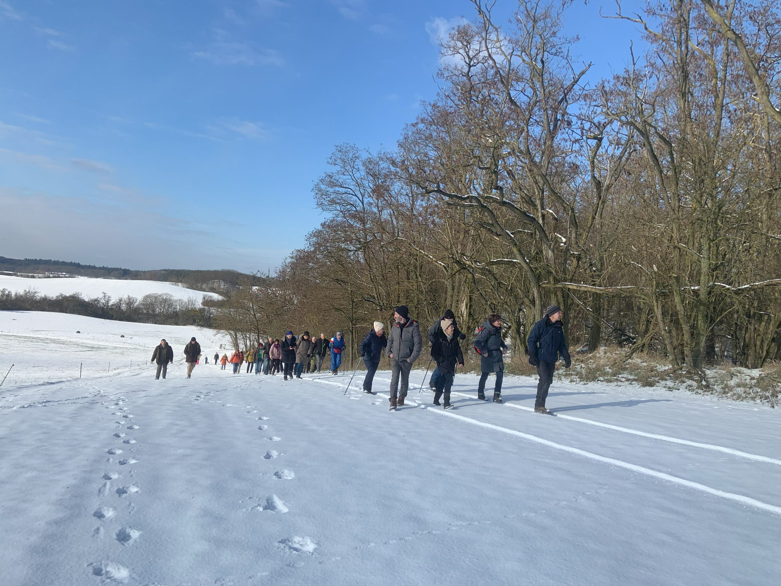 Am Samstag, den 15.Februar 2025 fand die traditionelle Winterwanderung des Heimatvereins statt. Bei bestem Winterwetter nahmen insgesamt 40 Wanderfreunde teil und starteten vom Pfingstberg in Liepe, um gemeinsam die winterliche Natur zu genießen.